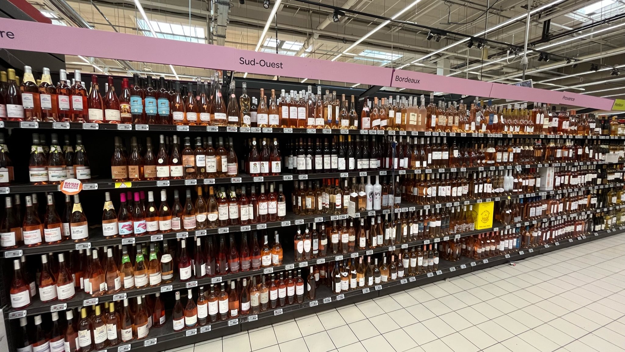 Siden vi forlod Paris har vi haft et par hviledøgn i Rambouillet i skoven, hvor der var ro, en pool, lidt lejrstemning, lidt dovenskab og nå ja, så fik vi også solgt vores sommerhus på afstand. Derfor rosé til aftensmad. Det har de en hel del af i supermarkedet (se foto).