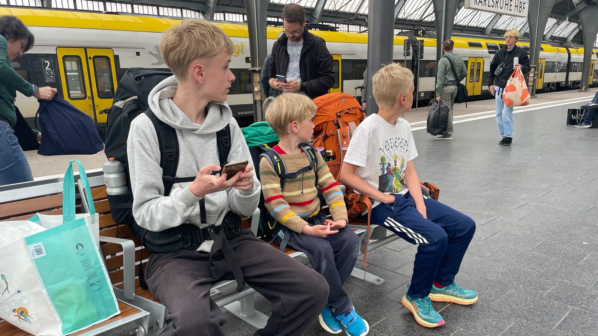 På stationen i Karlsruhe springer vi ud af toget og småløber til spor 8 for at konstatere, at der stadig er små 10 min til toget kører. Vi nåede det!
