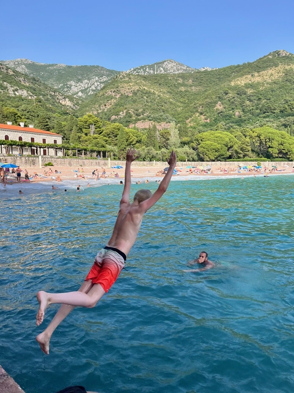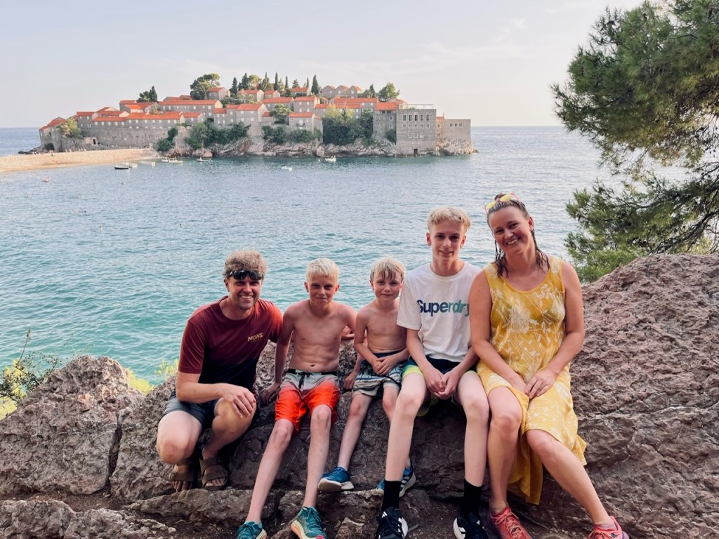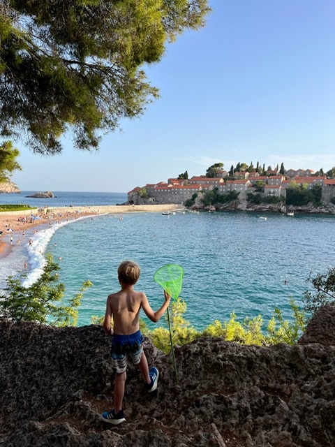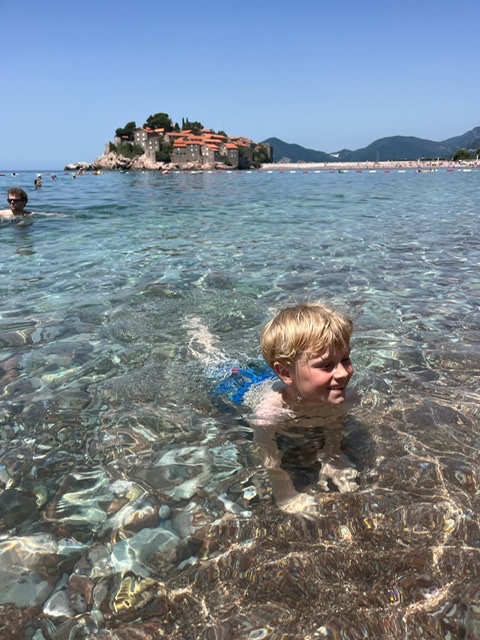 Faktisk er det perfekt timing. At hedebølgen skulle komme, netop som vi har seks dage ved Adriaterhavet. Her bor vi i byen Sveti Stefan, som drengene allerede inden ankomst havde døbt Sweaty Stefan – eller bare svedige Stefan.