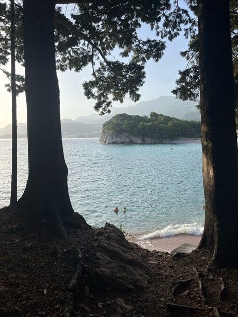 På andendagen i Sveti Stefan begyndte vi at undre os over, hvorfor der var skodder for alle vinduer ude på øen. Det virkede ret spøgelsesagtigt. Og da Hans og jeg gik forbi Milocer og Queens Beach på vej til nabobyen Prezno for at handle ind, var der ikke eksklusive liggestole og guldparasoller, men derimod fuld af børn, bedsteforældre, farverige parasoller, strandtæpper og køletasker. Det var her de lokale brugte deres eftermiddag og aften.